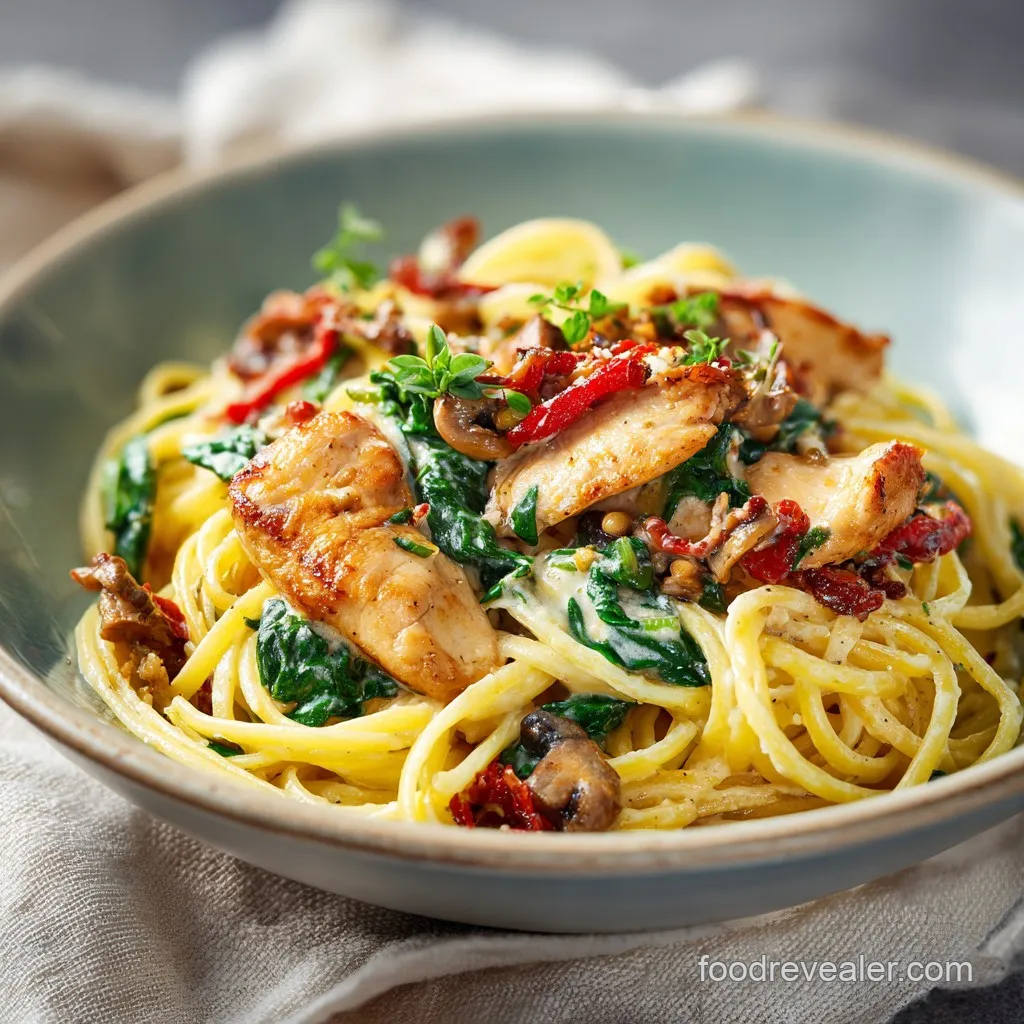 There's a common belief that you need flour or a roux to make a thick cream sauce. That's a myth. For a Creamy Tuscan Chicken Pasta, the reduction of the heavy cream combined with the emulsifying power of the Parmesan and pasta starch is more than enough to create a thick, luxurious coating.